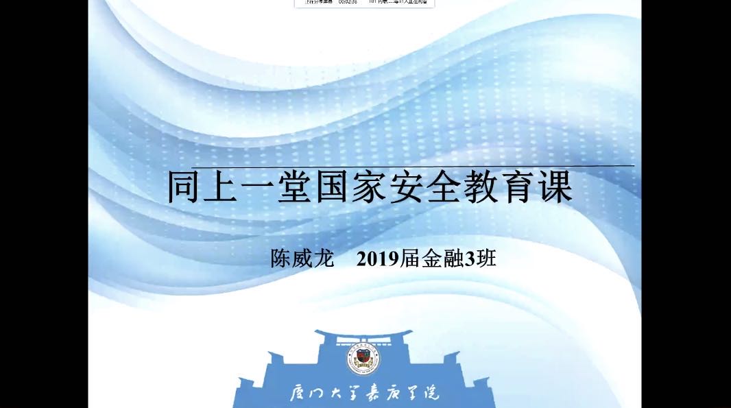 2020年4月15日,厦门大学嘉庚学院会计与金融学院19级金融(3)班线上开展了一堂“国家安全教育”课。