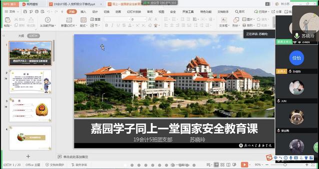 4月16日在19会计5班在辅导员苏晓玲老师的带领下,班级同学们进行了线上国家安全教育学习,并进行了热烈讨论。