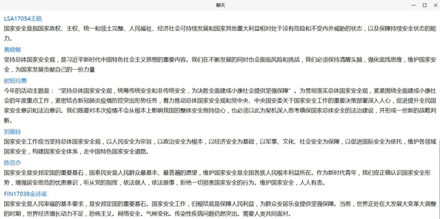 今年的4月15日是我国第五个全民国家安全教育日,为了加强对同学们的国家安全教育,强化国家安全意识,17财政1班在辅导员苏晓玲老师的主持下,共同观看了范维澄院士关于国家安全相关内容的讲课视频,并积极交流了自己的学习心得。通过范院士的授课,同学们更清楚地了解了我国的国家安全体系和具体内容,更深刻地认识到国家安全对于国家发展、社会稳定、人民幸福的重大意义,并结合今年突如其来的新冠肺炎疫情,意识到生物安全对当今社会的重要性。