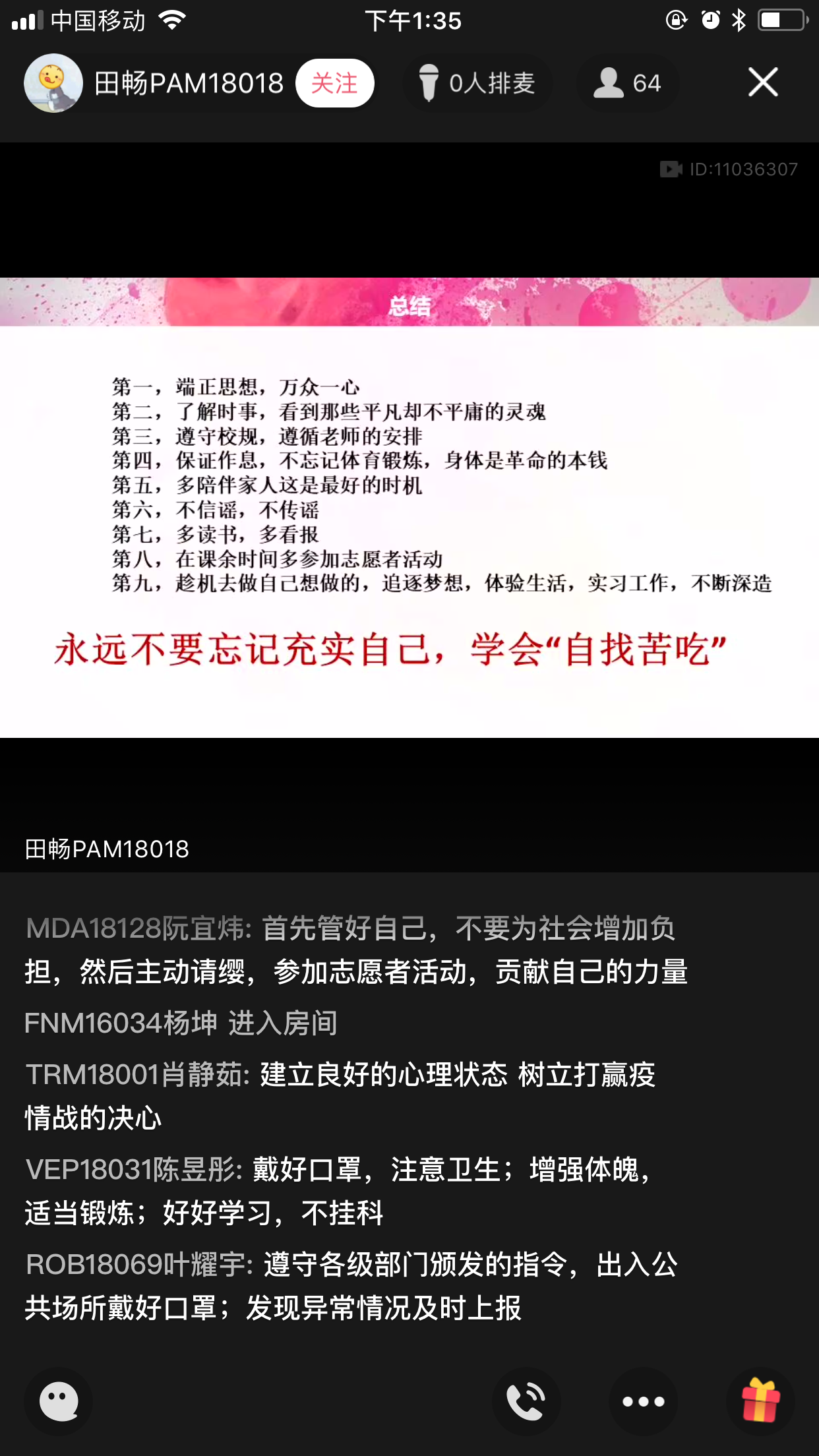 本次学习会在QQ群通过直播举行,并由班长田畅同学进行主持。学习内容主要从《习近平与大学生朋友们》系列专题报道展开学习:习书记邀请我们返家乡搞衣村调研、习书记与我们聊如何做好基层工作、习近平同志提倡年轻人要“自找苦吃”、习书记180余字寄语闽东大学生、习近平傍晚与我们社会实践团座谈。