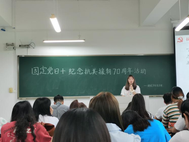 本次党日活动由2018级税收专业的夏雨轩同学主持,分为三个流程,帮助大家了解抗美援朝战争及其背后的故事和意义。首先夏雨轩同学向参会的党员、预备党员、积极分子介绍了抗美援朝的历史背景:1950年5月,朝鲜战争爆发,美国公然干涉并越过“三八线”,对中国东北造成威胁,甚至入侵中国台湾海峡。10月8日,我国做出了抗美援朝的重大决策。在会议中,夏雨轩同学讲述了抗美援朝的战争历程,介绍了革命先烈黄继光、邱少云、毛岸英、杨思根等,帮助大家更好的了解那段烽火峥嵘岁月,激发了大家的爱国热情和家国情怀,同时弘扬了伟大的抗美援朝精神,激发青年党员和积极分子的爱国热枕。抗美援朝的胜利具有重大意义,中华民族以崭新的姿态屹立于世界民族之林。