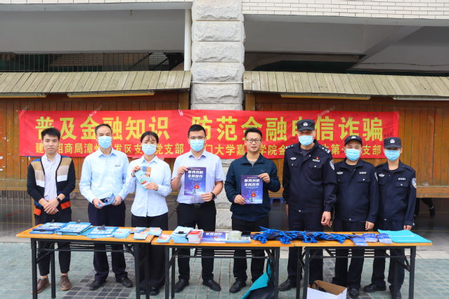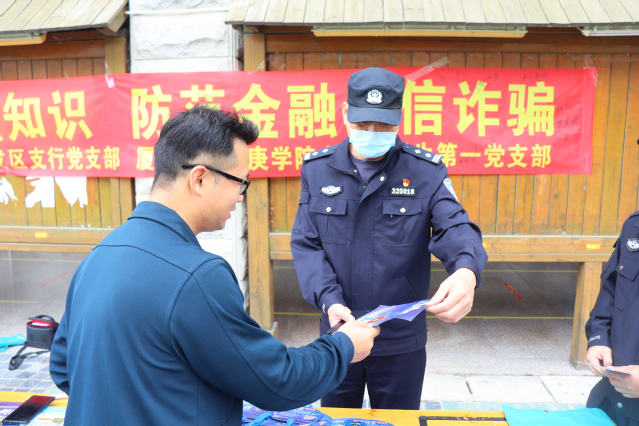 11月16日上午,我支部继续在北区开展普及金融知识、防范金融电信诈骗活动暨2021级劳动教育活动。本次活动邀请漳州开发区南太武派出所、建设银行招商局漳州开发区支行两家单位,共同开展反诈宣传活动。学工部部长助理孟靖岳、会计与金融学院党总支书记甘友成、开发区支行副行长游友森、南太武派出所江警官、会计与金融学院辅导员何善生到场参加。本次活动由会计与金融学院党总支主办,会计与金融学院教工第一党支部、金融学学生第一党支部承办,建行开发区支行党支部协办。本次活动得到漳州市招商局开发区公安分局反诈中心的大力支持。