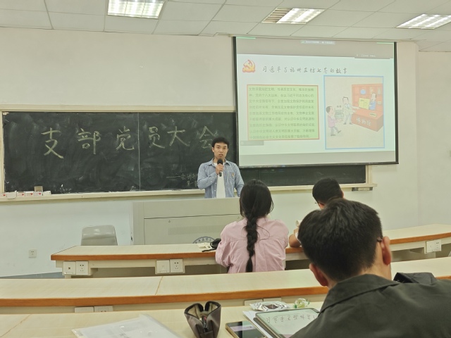 会议第一项环节,支部书记讲党课。文物承载灿烂文明,传承历史文化,维系民族精神。何善生同志以文化遗产保护为开篇,讲述了习近平总书记与福州三坊七巷的故事。同时,会议强调了党的十八大以来,习近平总书记对文化传承和文物保护所做的巨大支持和贡献,有助于发扬中国特色社会主义文化自信,促进同学们认识中华文明需薪火相传。通过本次党课,支部党员同志深刻认识到保护文物、传承中华优秀传统文化的重要性,保护和弘扬传统文化人人有责。