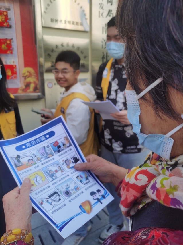 在此次活动中,志愿者们协调分配任务——分发宣传海报,帮助居民进行试卷答题,批改试卷,分发奖品等。在此次活动中,志愿者们发现南滨社区存在较多老年居民不识字,对各类诈骗形式不了解的情况。党支部的反诈宣传员们耐心的将题目读出来,帮助老年人完成答题,我们也发现多数老年人防诈骗意识都很高,试题问卷得到非常良好的反馈。
