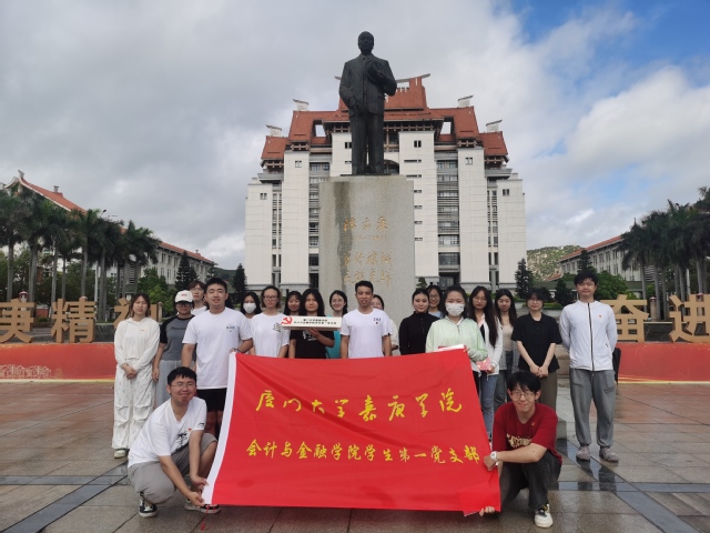 为学习和弘扬嘉庚精神,6月29日早上8:00,在支部书记何善生同志的带领下,会计与金融学院学生第一党支部在校生党员共计23人在陈嘉庚先生铜像下整装肃立,拉开了本次实践活动的序幕。