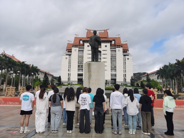 在党支部书记何善生的带领下,全体党员向陈嘉庚先生铜像深深三鞠躬,深切缅怀陈嘉庚先生。目的是要教育和引导支部党员以陈嘉庚为榜样,学习他爱国爱乡、无私奉献的精神,激发广大师生铭记校史、感恩先贤的深切情怀。
