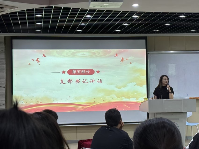 随后,主持人周奕君以“历史回眸——雄关漫道真如铁”为题,引导大家聚焦“为什么铭记九月”。她结合九月“抗日战争胜利纪念日”等重要历史节点,强调“历史是最好的教科书,也是最好的清醒剂”,系统梳理了1931年至1945年十四年抗战历程,从局部抗战到全面抗战的发展脉络,阐释了中国共产党在抗战中的关键作用与理论贡献,清晰呈现了党作为民族抗战中流砥柱的历史事实,使全体支部成员深刻认识到全民族团结抗战的伟大意义。