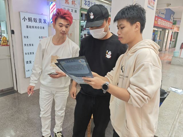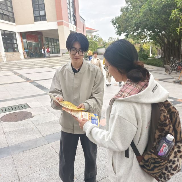 实践过程中,同学们组成宣传小队,在各小组在食堂门口、教学楼大厅、宿舍楼下设立反诈宣传点,主动向同学发放宣传资料,引导同学们在实践中学习反诈知识,耐心讲解电信诈骗、网络刷单诈骗、校园贷诈骗等典型案例。面对全校同学,大家精准施策,用鲜活的案例敲响反诈警钟。从羞涩开口到从容宣讲,从被动学习到主动传播,每一次沟通、每一份付出,都是劳动教育的生动实践。劳动的汗水浸湿了衣衫,却让反诈的种子在更多人心中生根发芽。
